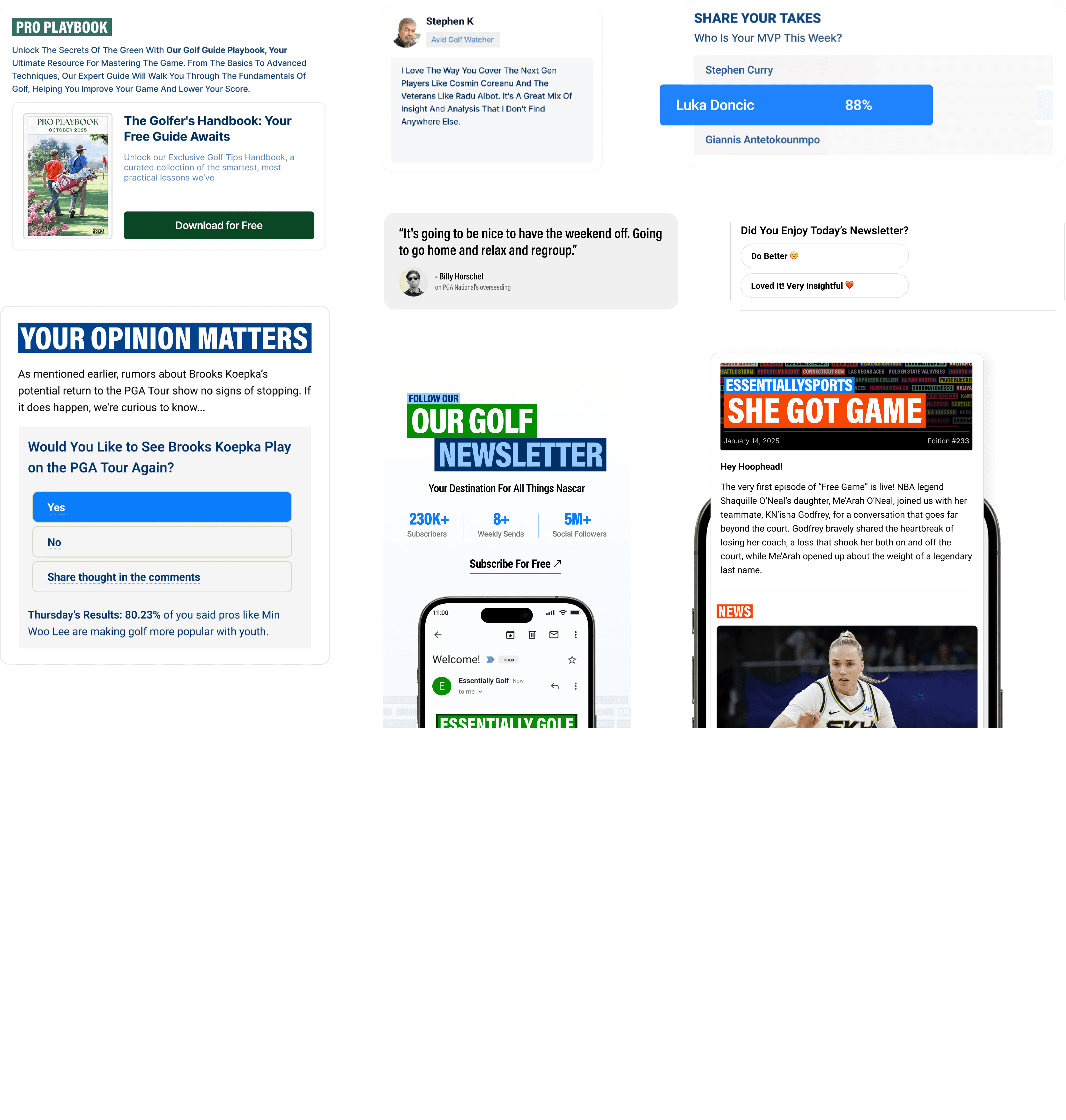The solution wasn't to bolt on gimmicks. EssentiallySports' audience-first culture demanded that every change felt earned and purposeful - pure quests based on the sport they follow. Alongside engagement mechanics, we rebuilt the entire newsletter structure from layout to branding to CTA hierarchy.