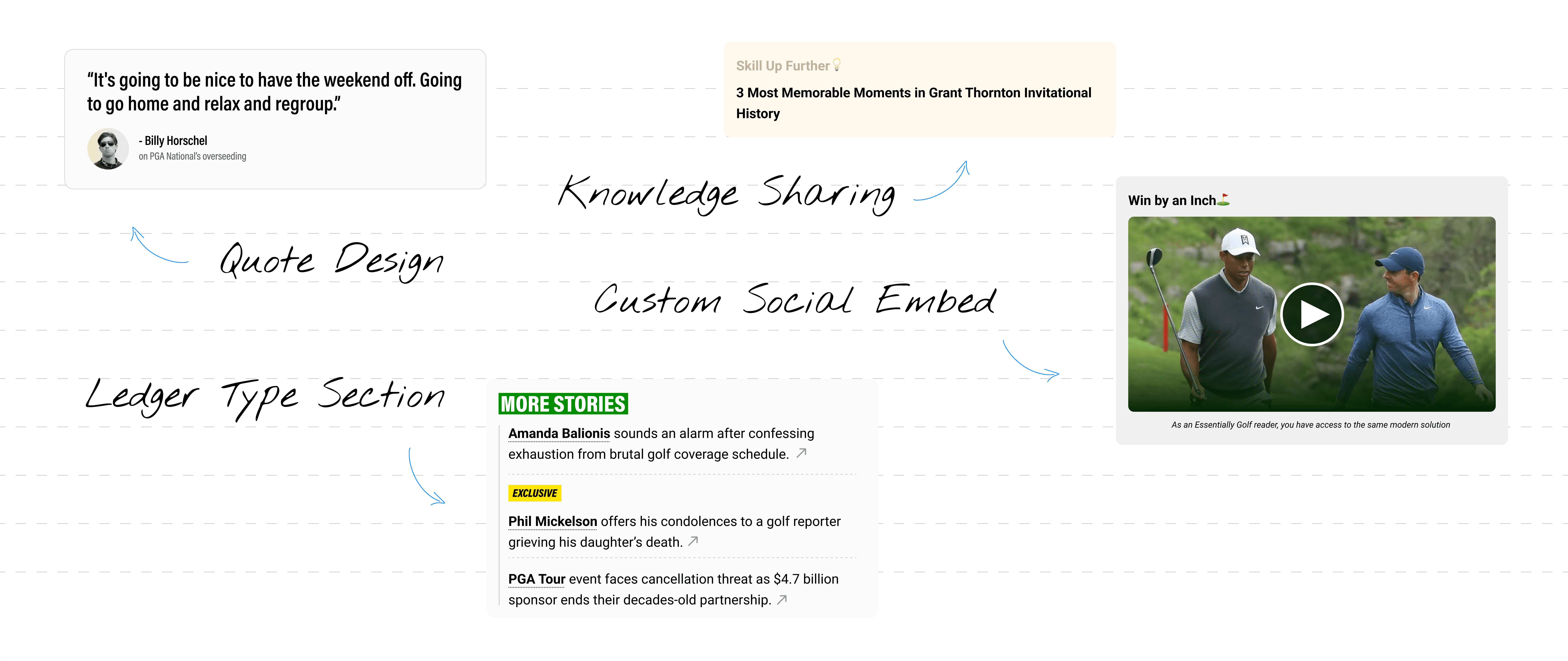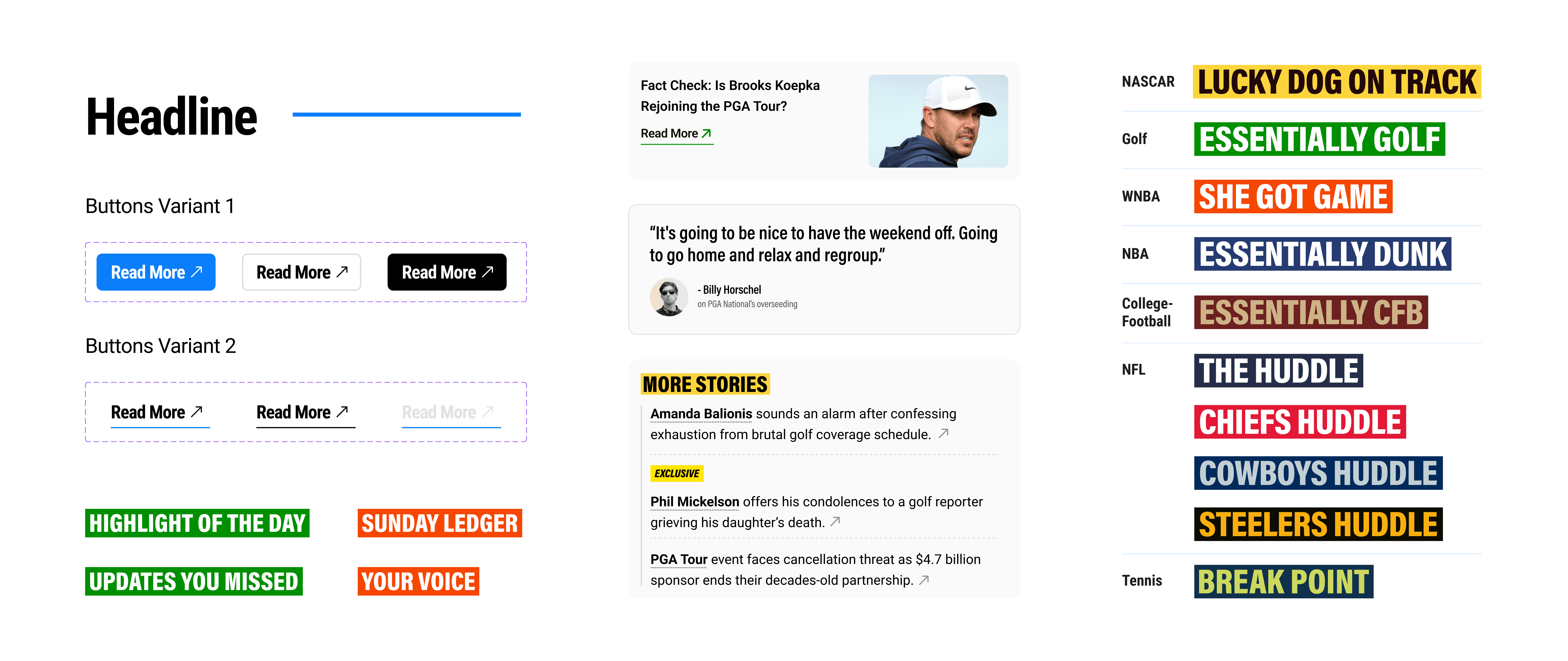 Rebuilt layouts for clarity and visual hierarchy. Inspired by the newspaper headline aesthetic of EssentiallySports' new brand direction - editorial, bold, familiar to a mature audience.