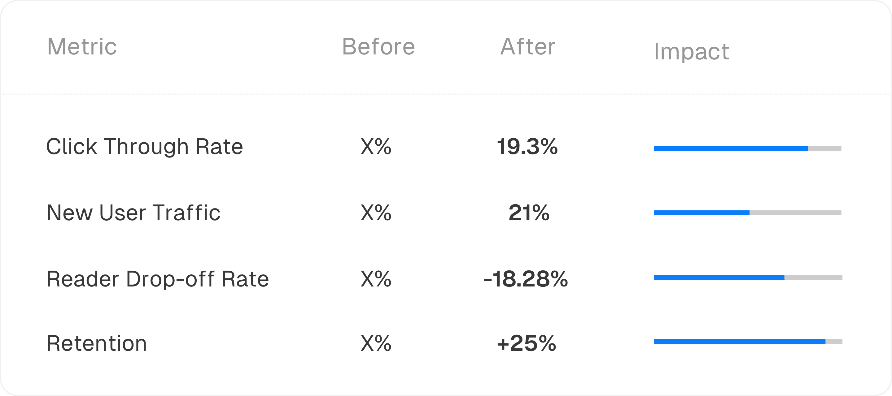 How redesigning product drove measurable adoption across a complex issues that readers faced on daily basis.